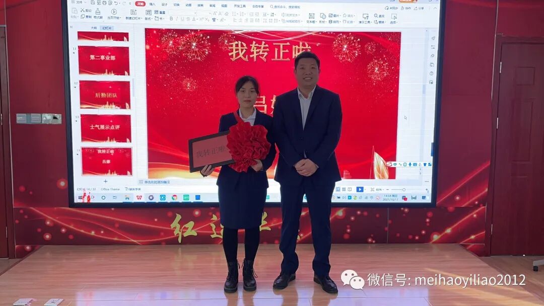 本季度有一名员工吕娜转正,吕娜在分享时说到,自己已经有了一些从业经历,但像红运华康这么有仪式感的转正流程是第一次经历。在近三个月培训,考试,竞赛,上岗的各项考核中,自己全力投入,积极参与,已经把自己融入了这个大家庭。往后的日子里将和红运华康一起成长,共向辉煌。