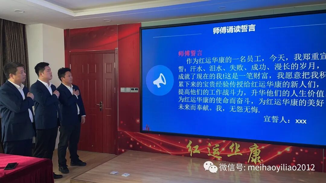 启动会举行了隆重的新员工拜师仪式,本季度又有三位新员工加入红运华康。在拜师仪式上,师傅和徒弟都进行了帮带宣誓,旨在把好的技能和公司文化更好的传承和传授。