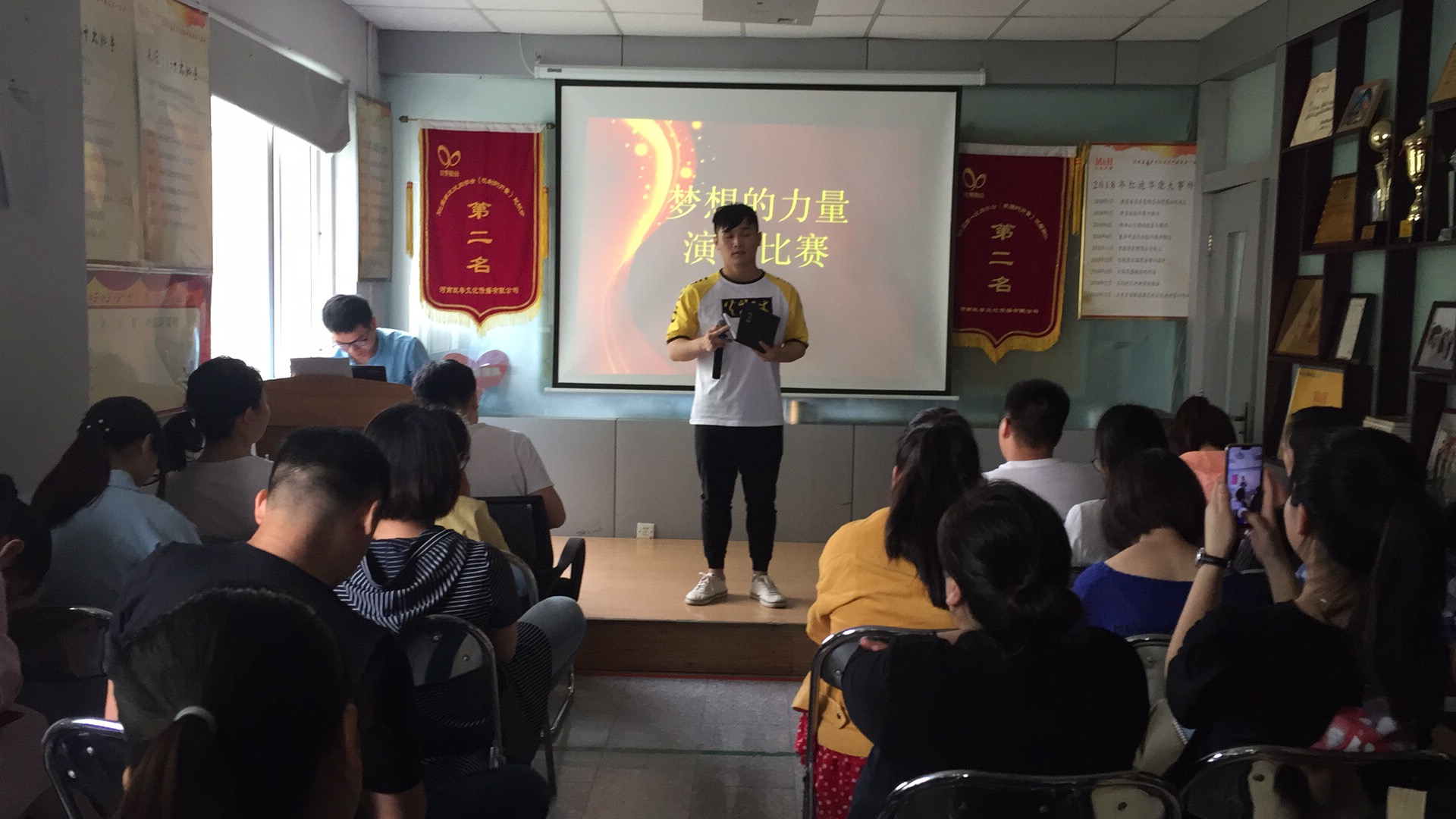接下来,学员孙潇潇、王豪杰……依次上台演讲。大家都在演讲过程中,回忆成长路上曾有的迷惘,为打破迷惘做出的努力,在梦想认知路上是怎样的旅程。在红运华康亲密接触的时间内,对公司文化的认同程度,为实现梦想给自己设计的红运华康职业道路。最后经过落地委的综合评分,王黎明获得本次演讲的冠军。