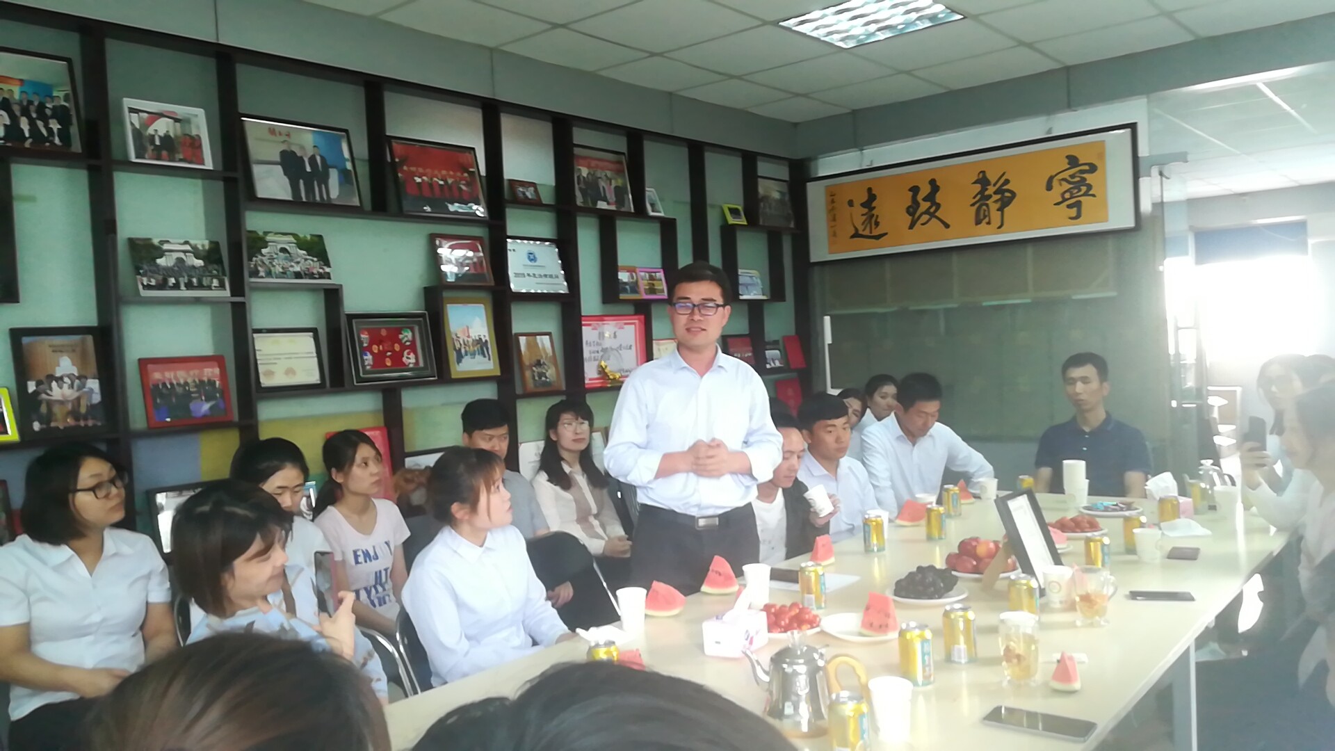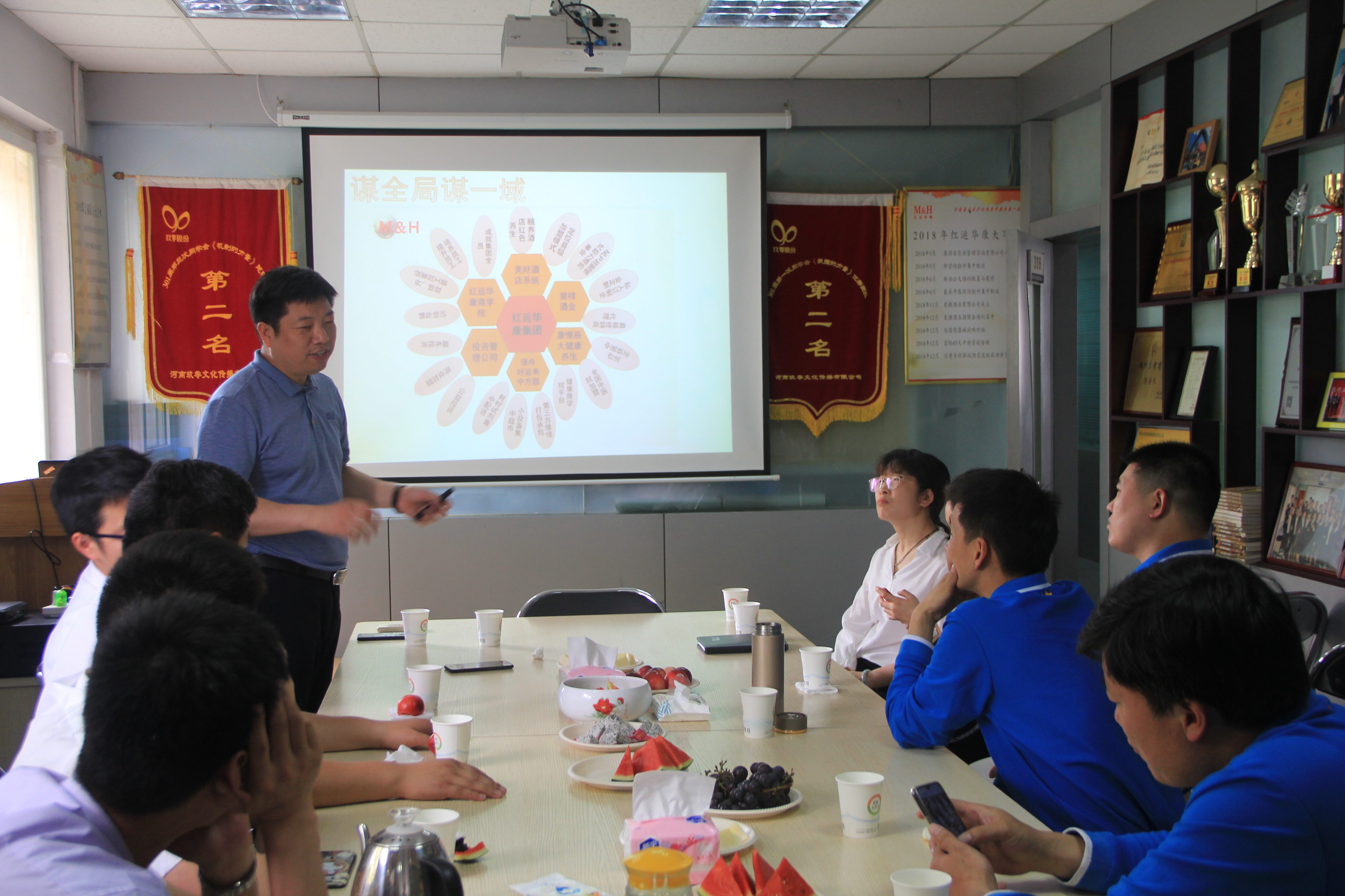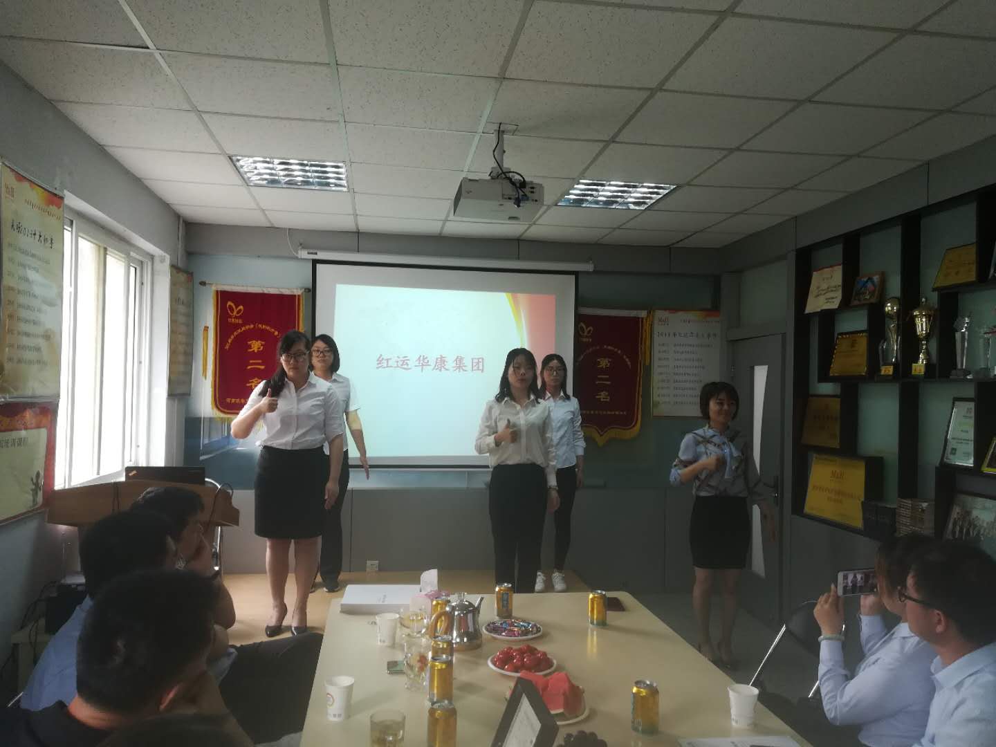 参观人员到达会议室后,接待人员向大家展示了公司自行创作的《美好之歌》以及“美好之舞”,并观看了公司宣传片。看到红运华康完善的企业文化,一行人纷纷表示赞同。参观人员详细了解了红运华康主营业务,客户观,红运华康发展愿景。随后,李胜红董事长详细介绍了红运华康目前拥有的子公司,各子公司经营范围及工作地点。同时,李董事长也向大家介绍了公司规划,本年度业绩目标,以及公司“个十百千万”计划。在与友企互相交流的时间内,大家纷纷讲述了各自企业在“90”落地过程中的收获,问题以及后期落地规划。
