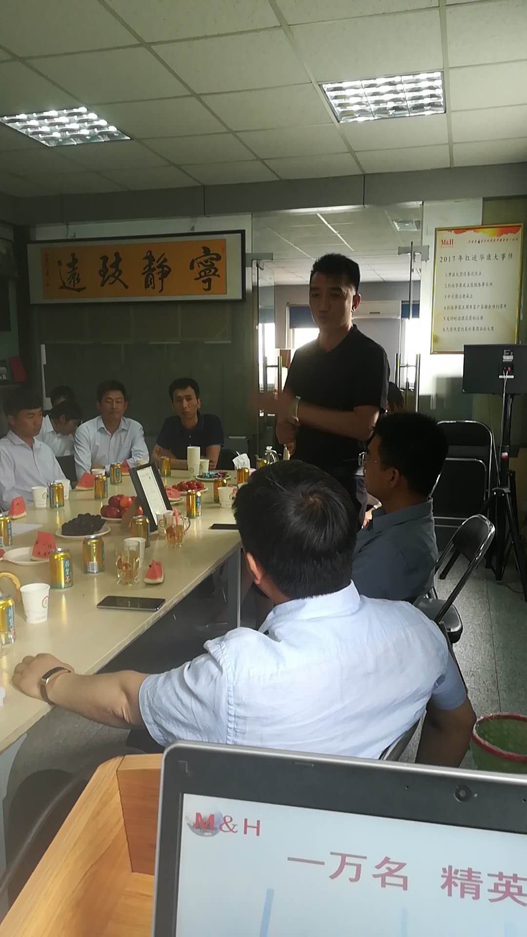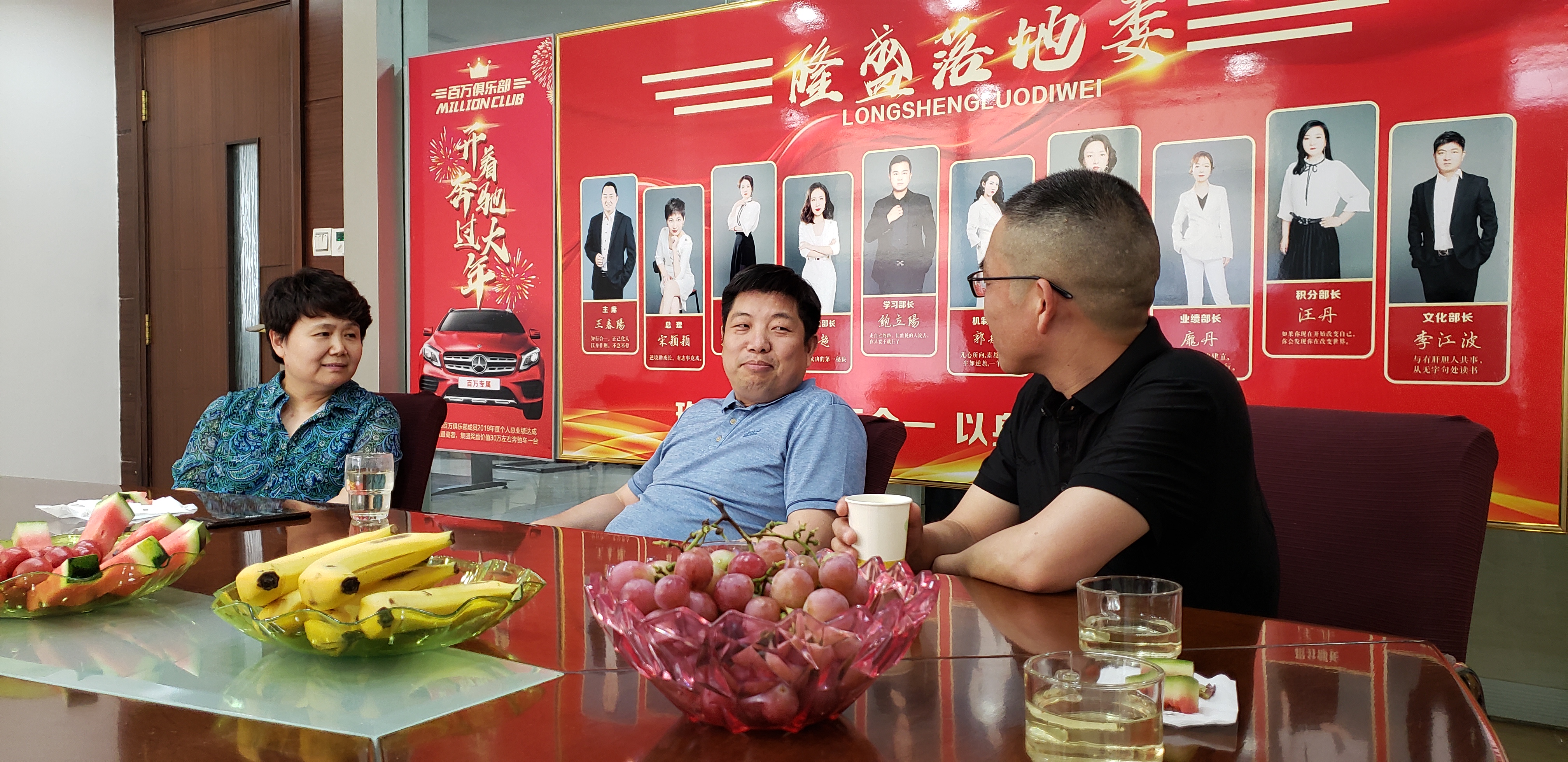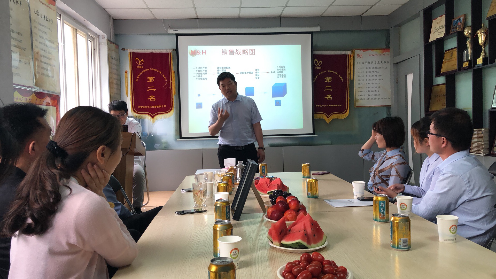 苗董、宋董和等一行人先参观了公司文化墙,对红运华康的经营范围,企业文化,经营理念等做了简单的了解,随后我公司王主席向参观人员介绍了红运华康成立以来的发展现状,经营模式和公司几款主打产品。在介绍到公司业务开展模式时,888电器一行人感叹走出公司销售模式的不易。