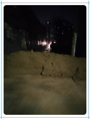——早上出门,晚上回家路已被土堆封上,他只好返回临时找住处凑合一夜。