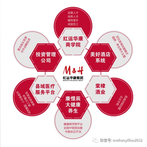 红运华康医疗经过几年的长足发展,已经成为一个多元化经营的集团公司,旗下有十家分公司,涉及医疗、中医慢病调理班、中医养生茶饮、商贸、快捷时尚酒店等有关人们健康领域的各个方面。