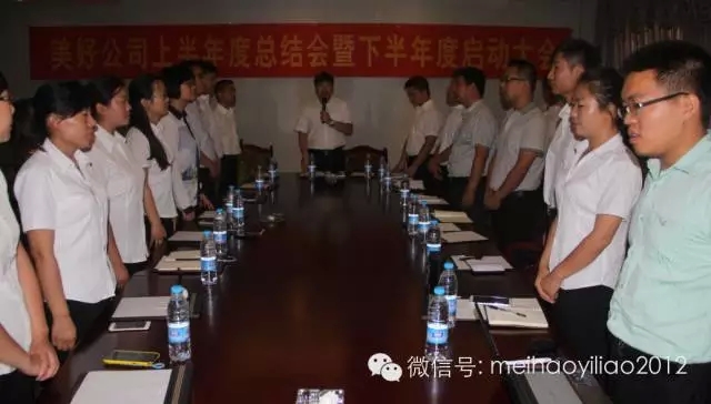 2015年7月11日在河南九州国际大酒店行政厅河南省美好医疗销售有限公司召开了上半年总结会暨下半年启动大会,美好公司总经理李胜红携公司全体全员参加本次会议,会议从上午9:00正式开始,下午19:00点准时落幕,本次会议从团队士气展示开始进行全员状态PK,而后各个员工一一总结了上半年度的工作成果以及不足并对下半年的工作计划进行汇报。各个负责人以及领导分别对各个人的成果以及规划给予了科学性的建议。