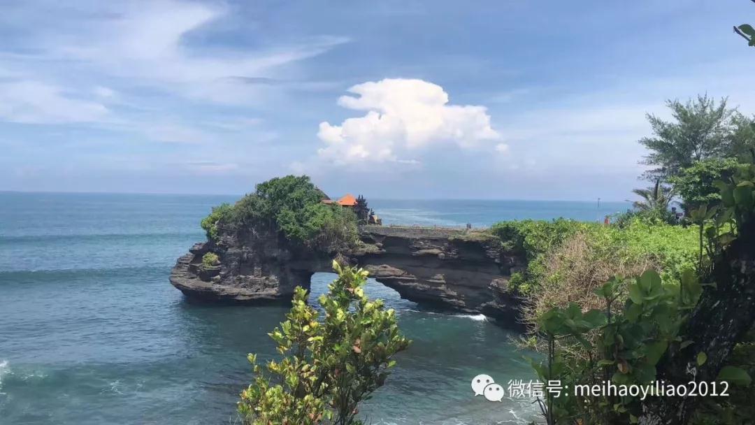 用完餐之后,我们乘车前往今天的第一个景点——世界闻名的“海神庙”。海神庙是巴厘岛最重要的海边庙宇之一,它坐落在离海不远的巨岩上,每逢潮涨之时,岩石将被海水包围,它就如一座水上楼阁,漂浮在海平面上;每逢落潮之际,它才与陆地相连。听导游说,海神庙曾流传着一段动人的传说:海神庙下面的岩洞里有几条有毒的海蛇,据说是此寺庙的守护神,寺庙刚建成时,忽逢巨浪,寺庙几乎被淹没,于是寺庙里的和尚解下腰带抛入海中化作两条水蛇镇住了海浪,从此海神就成为海神庙的守护神。