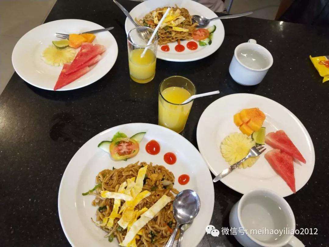 早晨,我们吃了他们当地的早餐--肉骨茶,也有特别推出了炒米和炒面,味道也是棒棒哒,水果更是随便吃。
