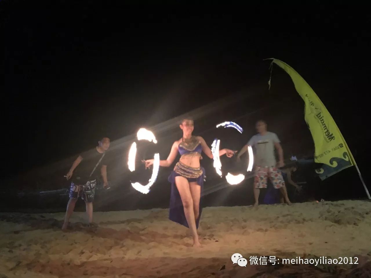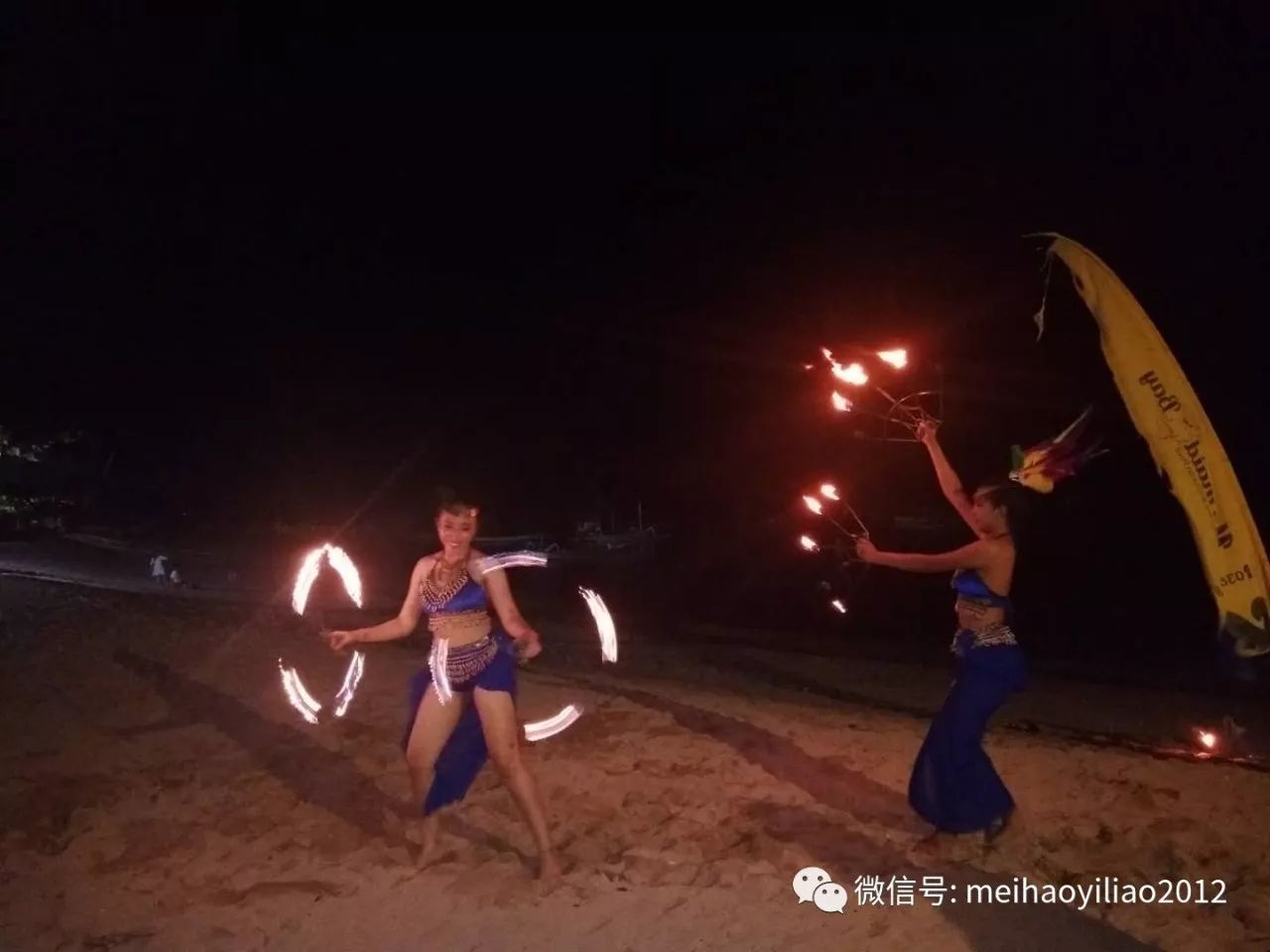晚饭之后,我们走向沙滩,开始了我们的篝火晚会,当地美丽的女郎为我们上演了精彩的火圈表演,真是美轮美奂啊!
