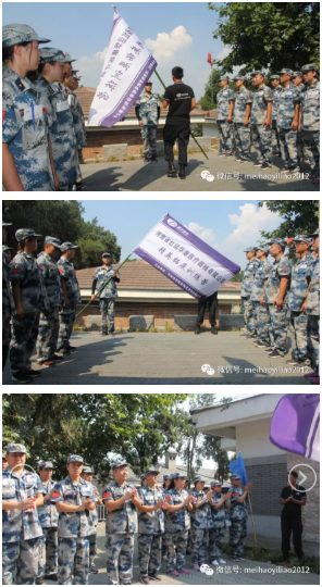 开营仪式的召开意味着训练正式拉开帷幕,全体行注目礼,宣誓,宣誓之后,从教练手中接过营旗,教练告诉大家再热、再渴、再累营旗、队旗不能倒,倒下将意味着全团覆没,只有它高高飘扬,希望和胜利才会永存!