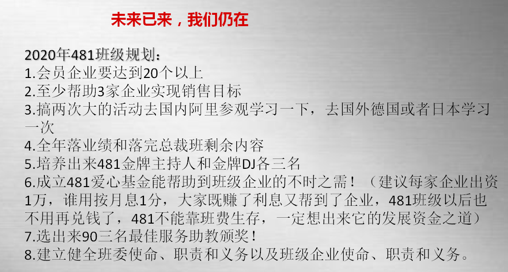 在产品介绍中,王振华主席还从班委的角度对481届2020年规划提出了建议。